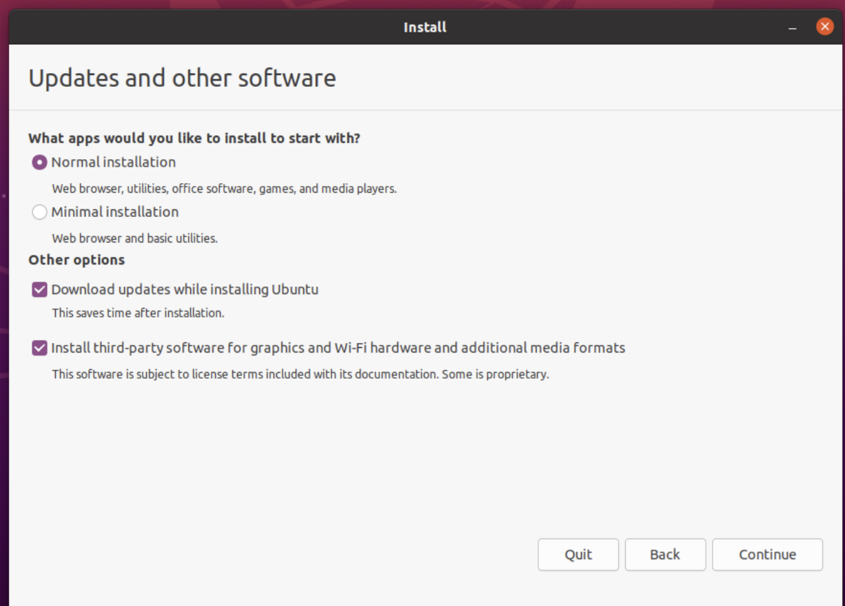 원래는 위처럼 하라고 되어있지만, 저는 마지막 옵션을 제외하고 Continue를 진행했습니다.