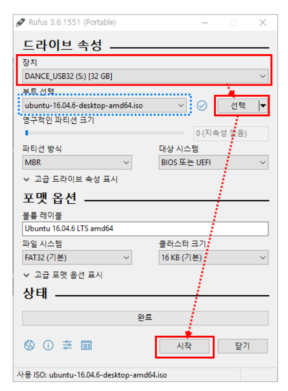 Rufus가 다운로드가 완료되면 아래처럼 선택을 눌러서 처음에 다운받았던 Ubuntu 이미지 파일을 선택해줍니다.