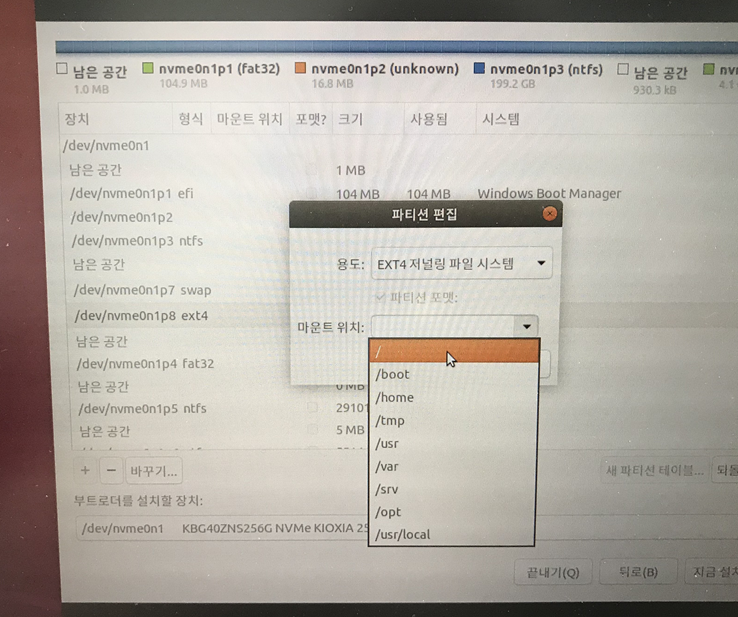 Ext 4 왼쪽의 숫자와 맞게 부트로더를 설치할 장치를 골라줍니다.