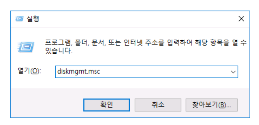 실행을 검색해서 아래와 같이 입력해주고 확인을 눌러줍니다.